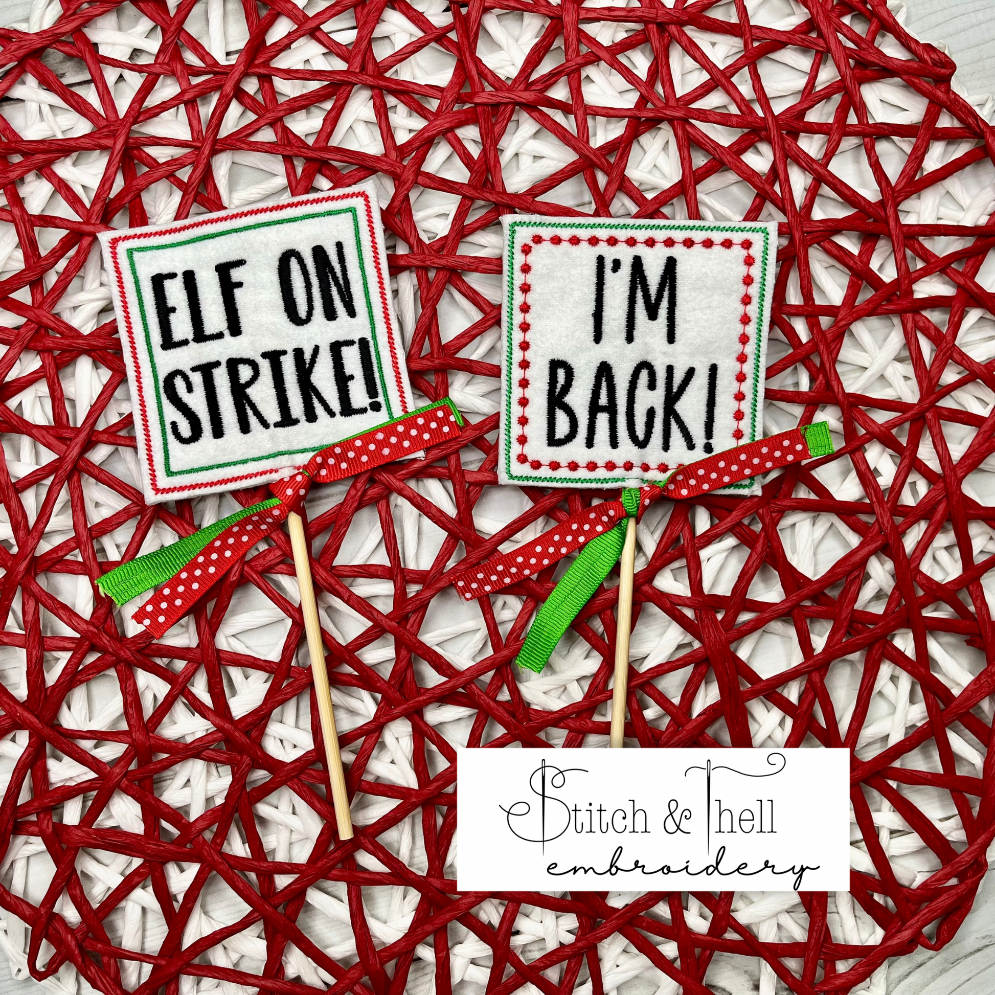 Welcome your elf back in style with these charming Christmas Elf Signs—the perfect accessory for capturing those magical moments. Whether it's their first day home or they need a playful "strike" break, these signs add humor and wonder to your holiday display. Crafted to complement your elf's adventures, they're an essential part of creating unforgettable Christmas memories.