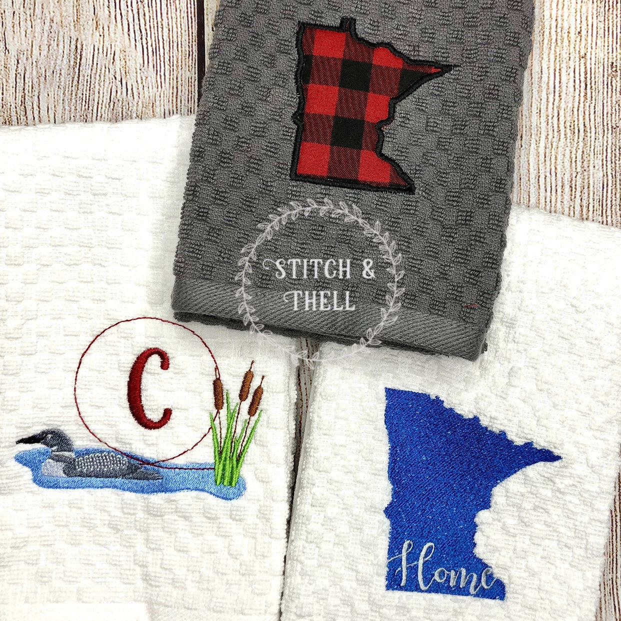 This 3 towel set comes with gray, and white waffle weave hand towels. Choose from any 3 designs you would like! If you have a specific towel color preferences for one of the designs, please make a note in the comments.