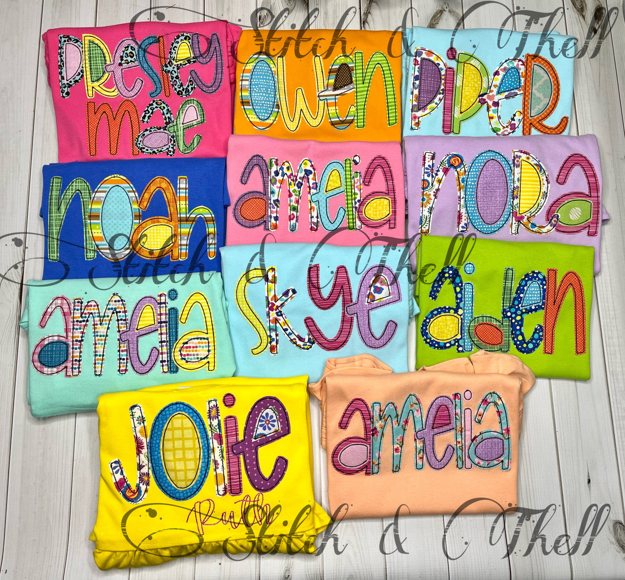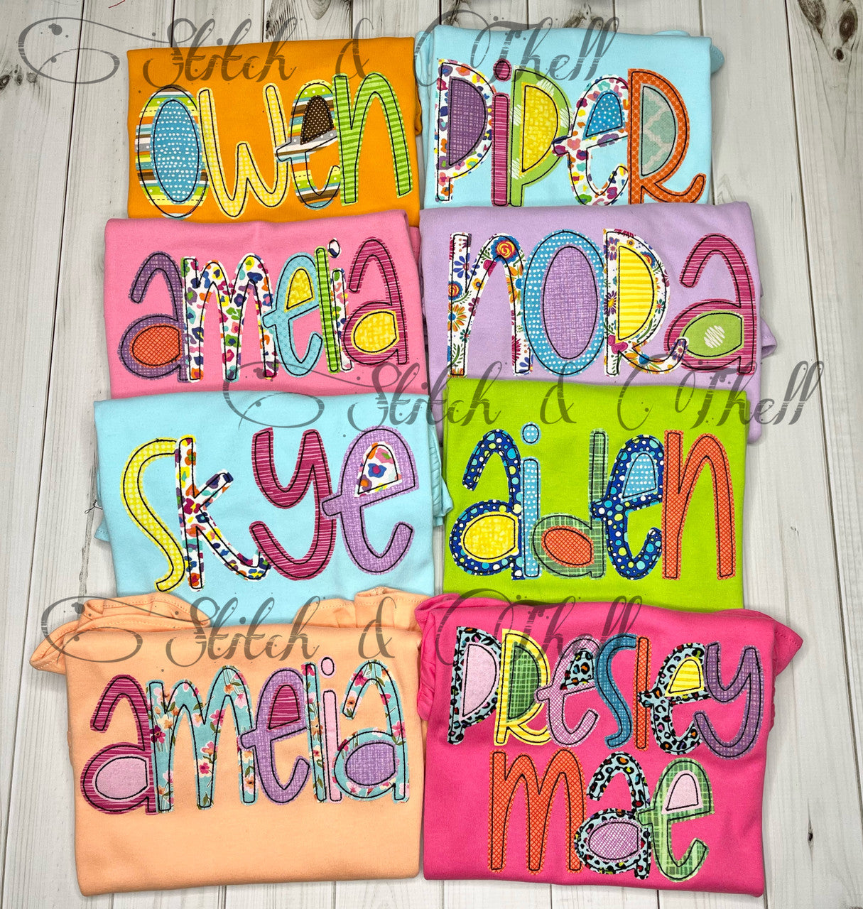 These Spring Name Tees feature bold, colorful, and bright fabrics that capture the vibrant spirit of spring and summer. Personalized with your name or nickname, these colorful tees add a playful and unique touch to spring and summer. Perfect for enjoying sunny days with style and personality.